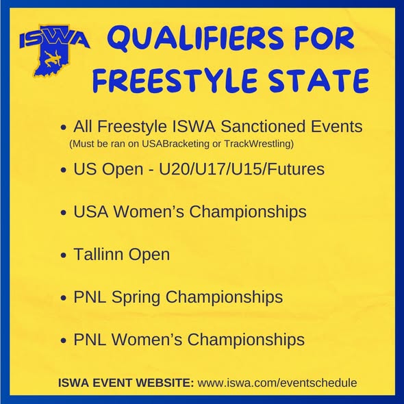 Wrestlers must wrestle at ISWA Freestyle and/or Greco State in order to be considered for the age level 14U/16U/Junior Team Indiana - Blue national team