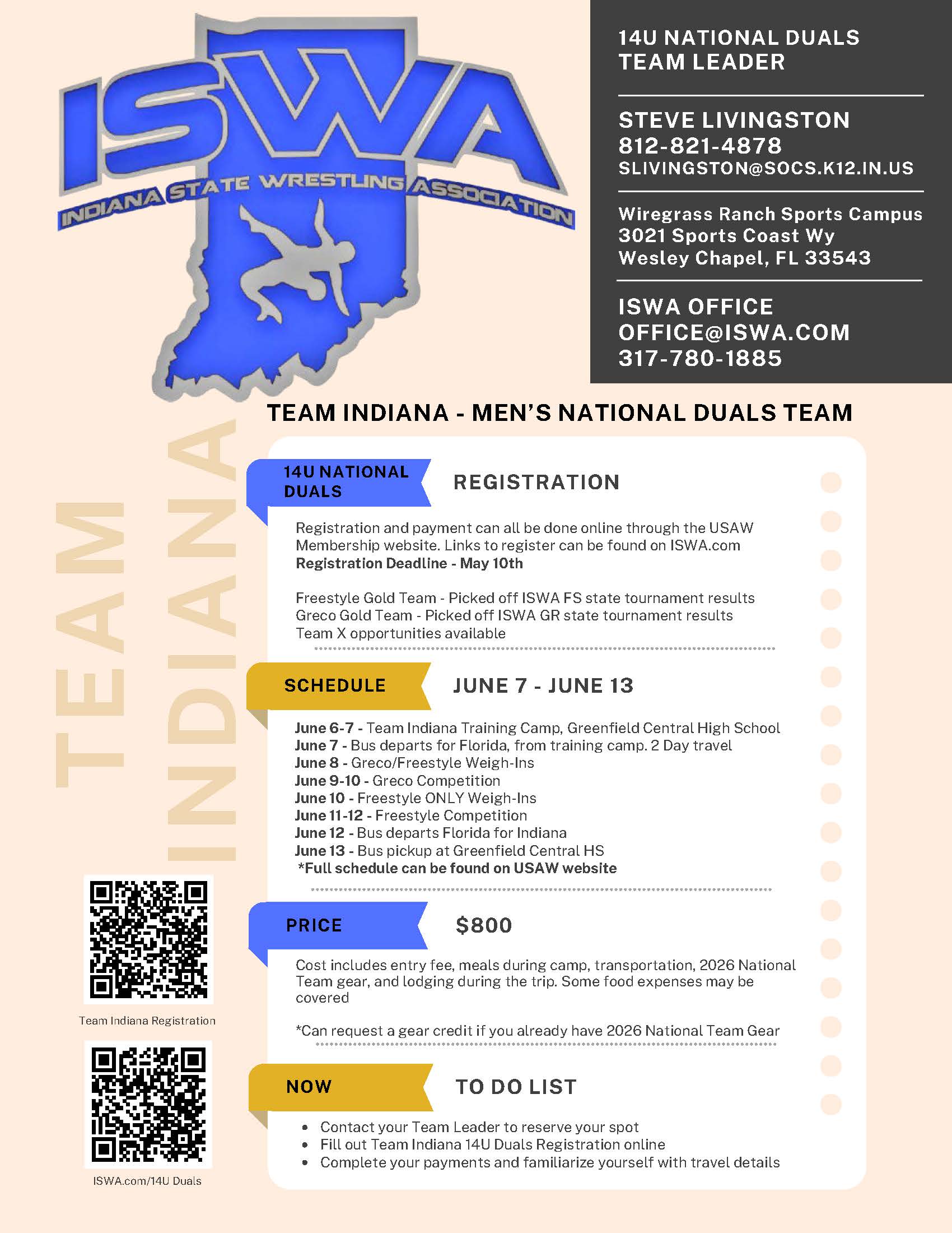 Wrestlers will be offered positions on the team (in each style), based on order of finish at the ISWA FS/GR State Finals